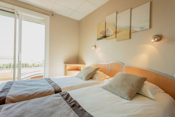Notre suite twin avec terrasse privée dispose de deux lits simples.